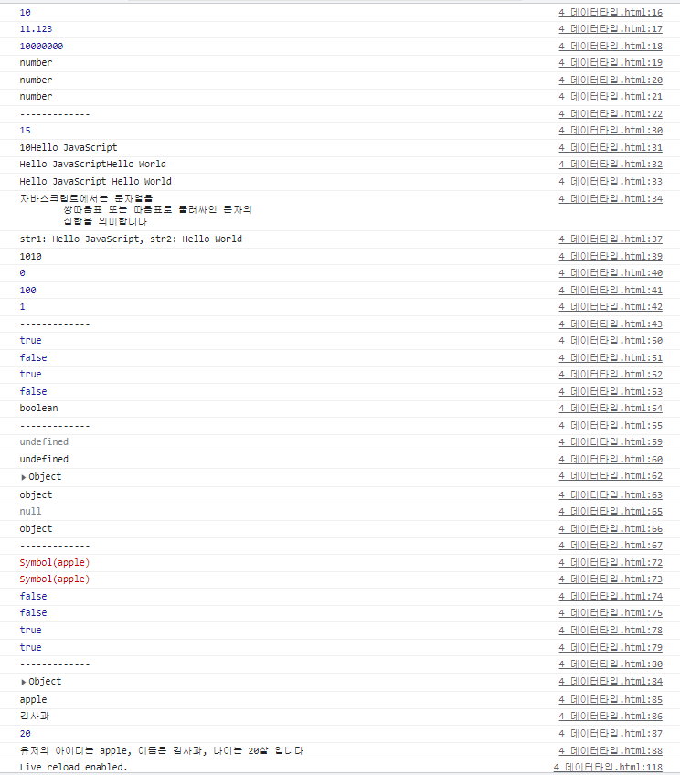 console.log(num4 + str1) // 연결됨