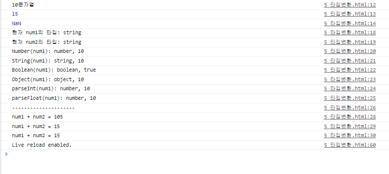 console.log(`parseInt(num1): ${typeof(parseInt(num1))}, ${parseInt(num1)}`) // 정수로 변환