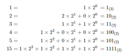 - 이진법에서는 0, 1의 2개 숫자만 사용하고 2 이상의 수는 자리를 나타내는 숫자를 나열하여 표현