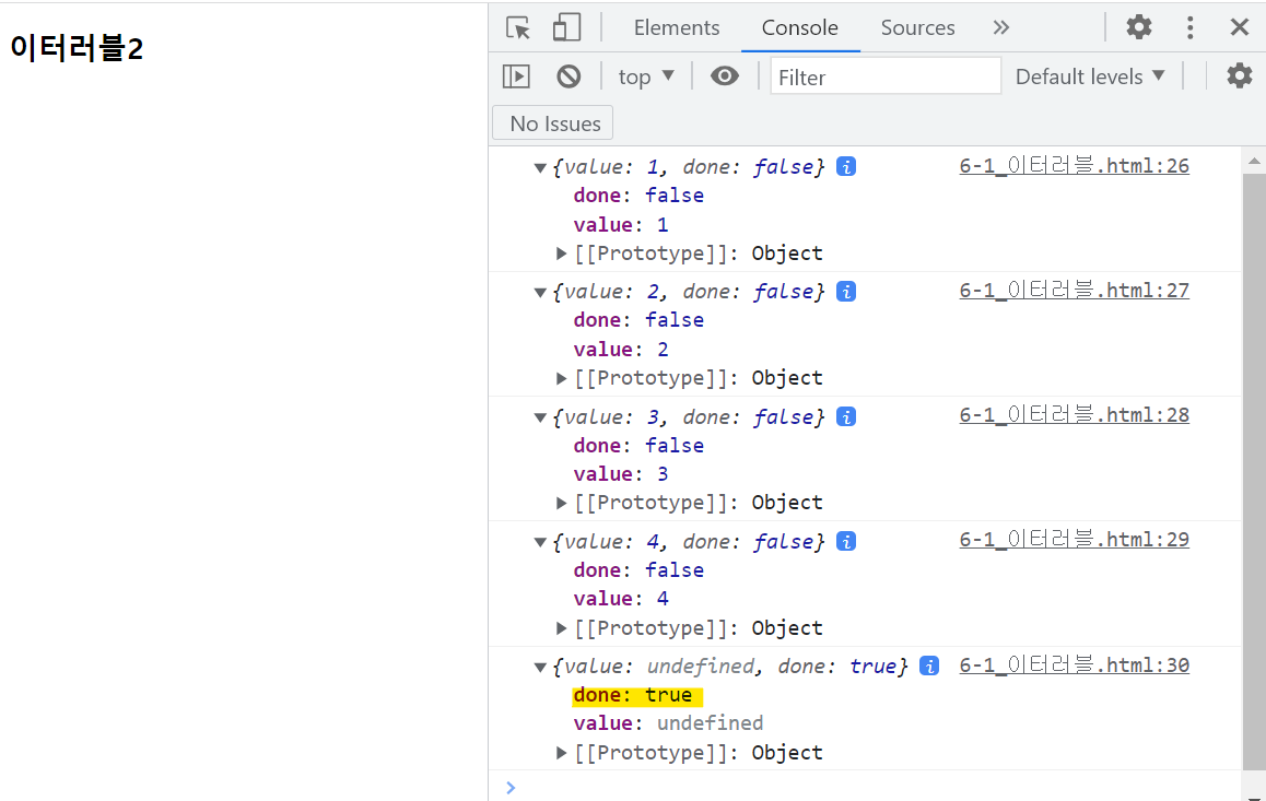 return {value:data[index++], done:false} // index의 값이 1씩 증가