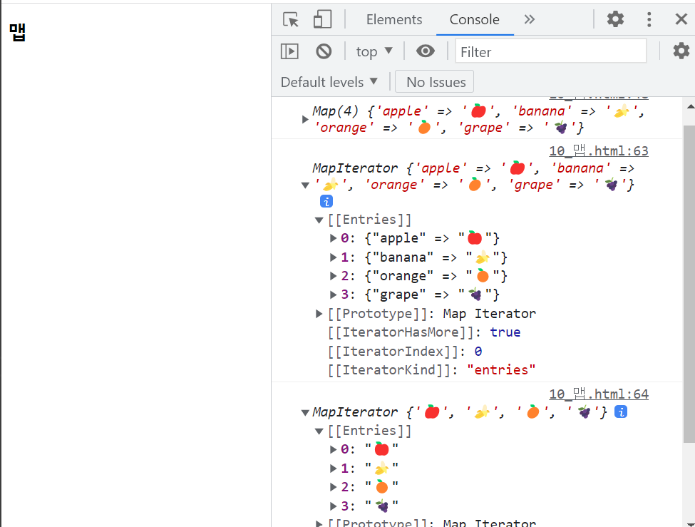 console.log(map.entries()) // 키값 iterator 반환