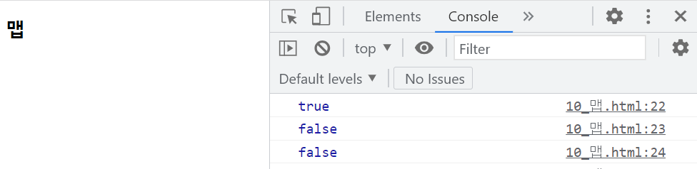 - Map 객체 내에 지정된 키가 있는지 여부를 반환