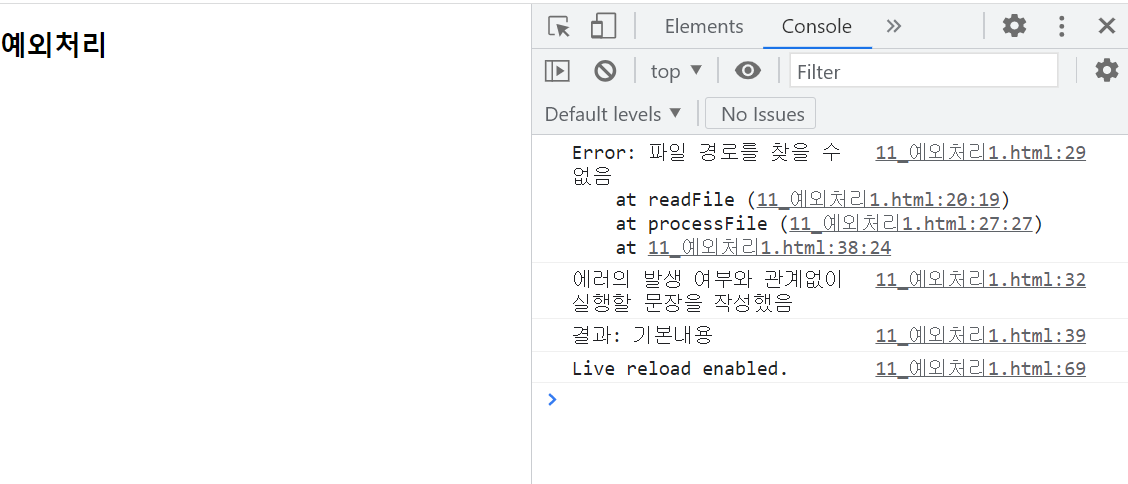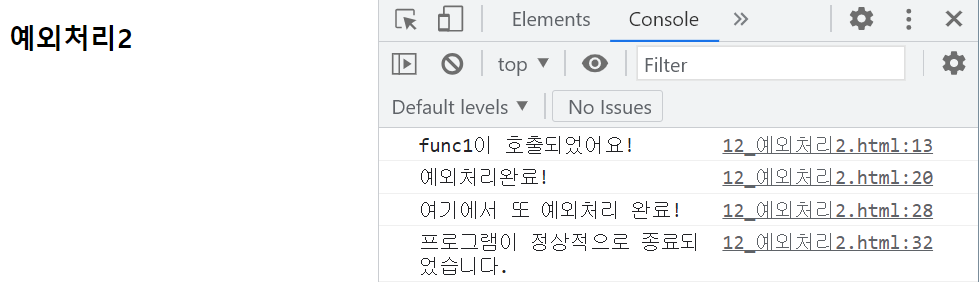 console.log('여기에서 또 예외처리 완료!')