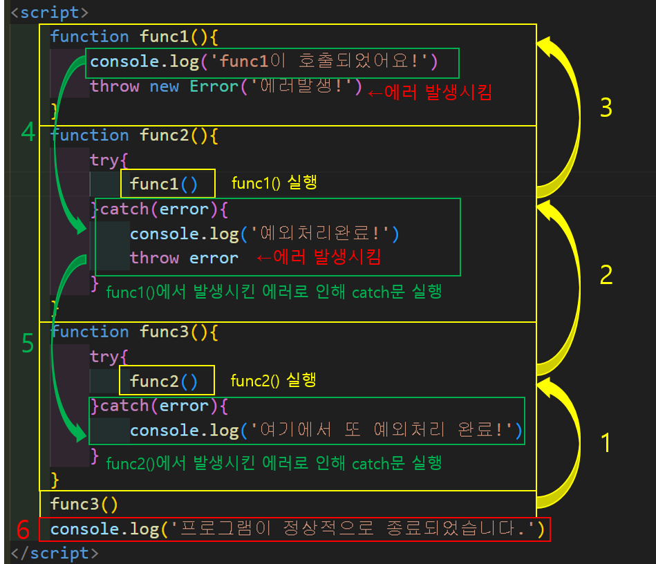 console.log('예외처리완료!')