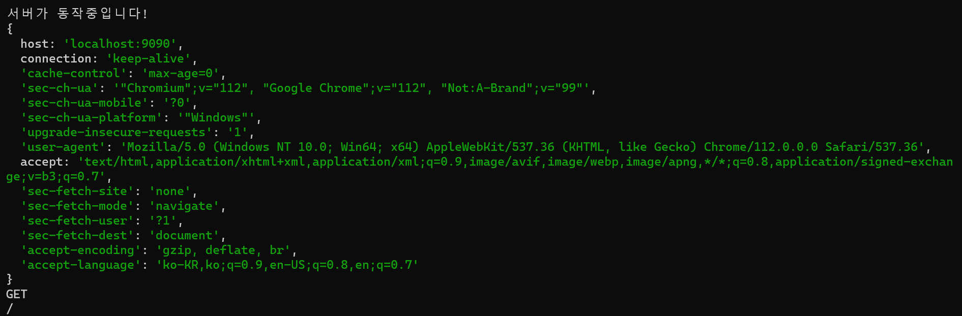 console.log(req.url) // '/': root정보, localhost:8080 이라고 쳤을 때