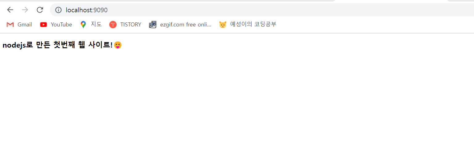 <h2>nodejs로 만든 첫번째 웹 사이트!😝</h2>