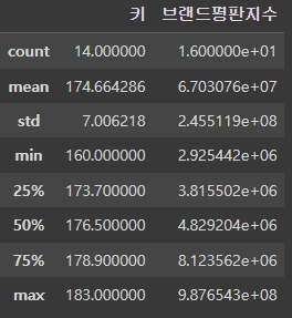 >>> 14 # count는 NaN을 포함하지 않고 계산