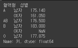 df.groupby(['혈액형','성별'])['키'].mean()