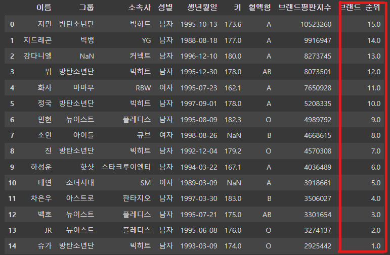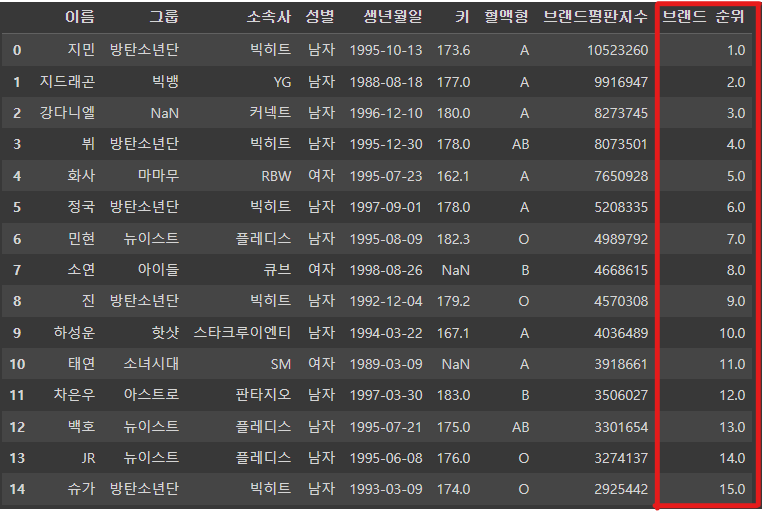df1['브랜드 순위'] =df1['브랜드 순위'].astype('int')