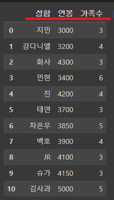 >>> KeyError: '이름' # df1과 merge시 이름과 성함이 다른 이름의 컬럼이기 때문에 에러남