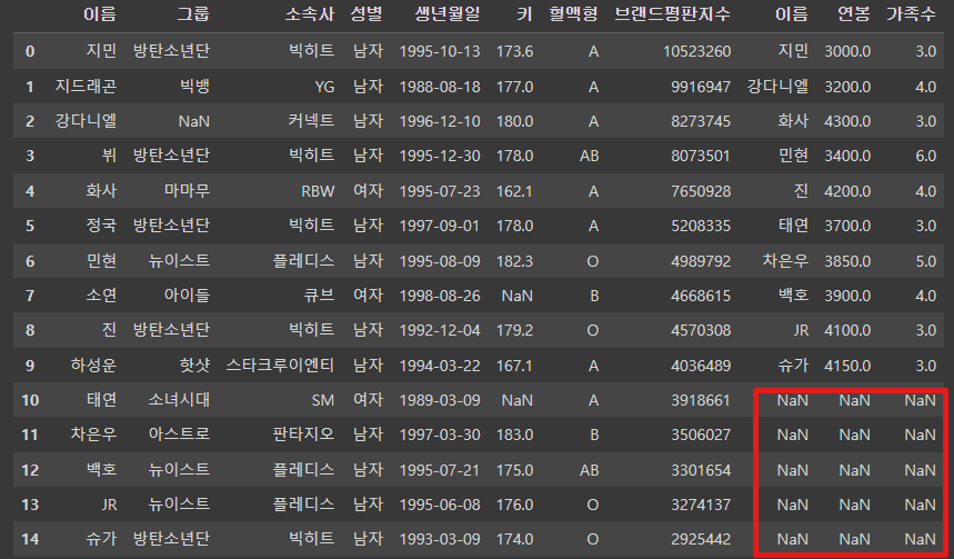 # 이름이 같은 데이터끼리 합침(left 테이블을 기준으로 합침 -> 오른쪽 테이블
