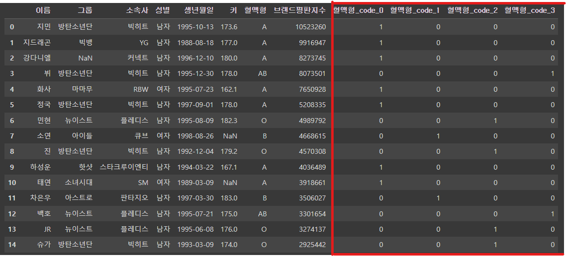 df = pd.get_dummies(df, columns=['혈액형_code'])