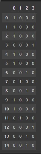 - 별도의 column들을 형성해주고 1개의 column에는 1, 나머지는 0으로 넣어줌으로 'A, B, O, AB형의 관계는 서로 독립적이다'라는 카테고리로 표현해주는 방식을 사용