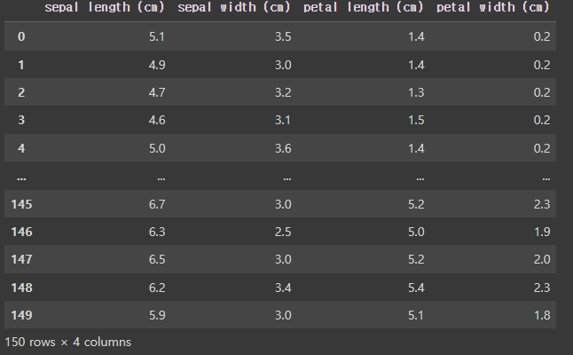 df_iris = pd.DataFrame(data, columns=feature_names) # 컬럼명은 feature_names와 동일