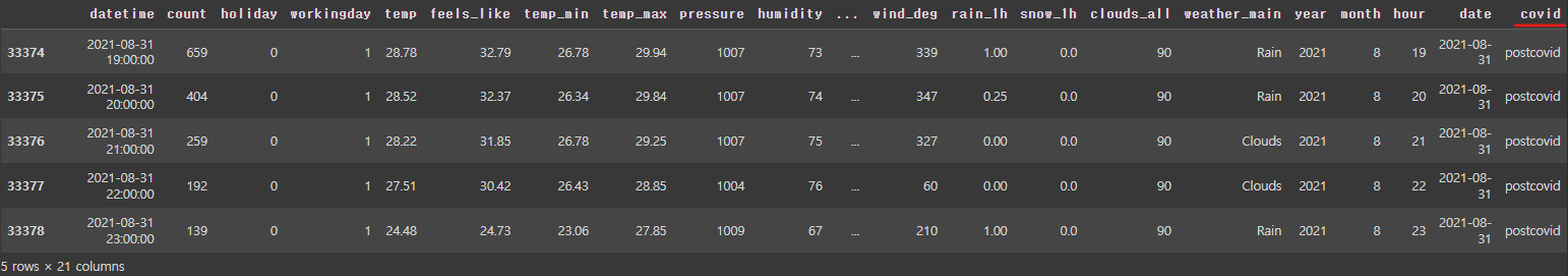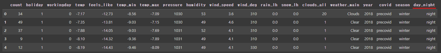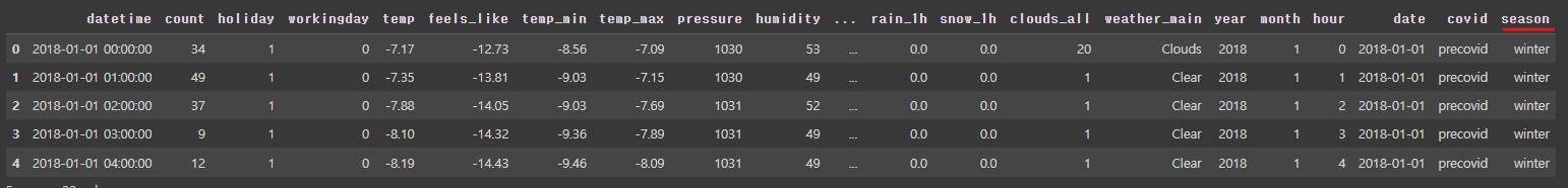 ✅ bike_df에 'covid'라는 새로운 파생변수를 만듦