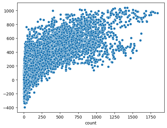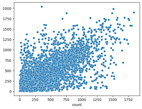 sns.scatterplot(x=y_test, y=pred1) # 모델이 잘 맞출수록 선형으로 나타남