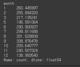 bike_df[bike_df['year'] == 2019].groupby('month')['count'].mean()