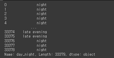 ✅ 'hour'컬럼으로 'day_night'라는 새로운 파생변수 만들기