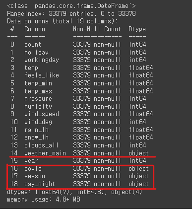 - 날짜를 계절과 같은 범주형 데이터로 바꿈(# 2020-04-01 이전: precovid