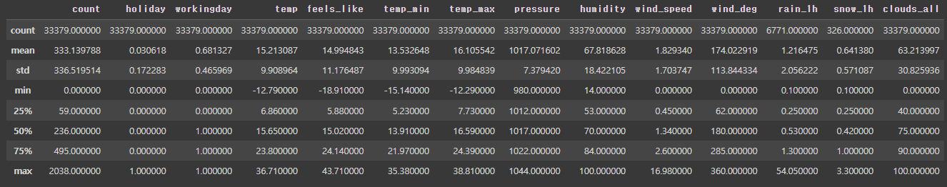 bike_df = pd.read_csv('/content/drive/MyDrive/KDT/Python/4.머신러닝 딥러닝/bike.csv')