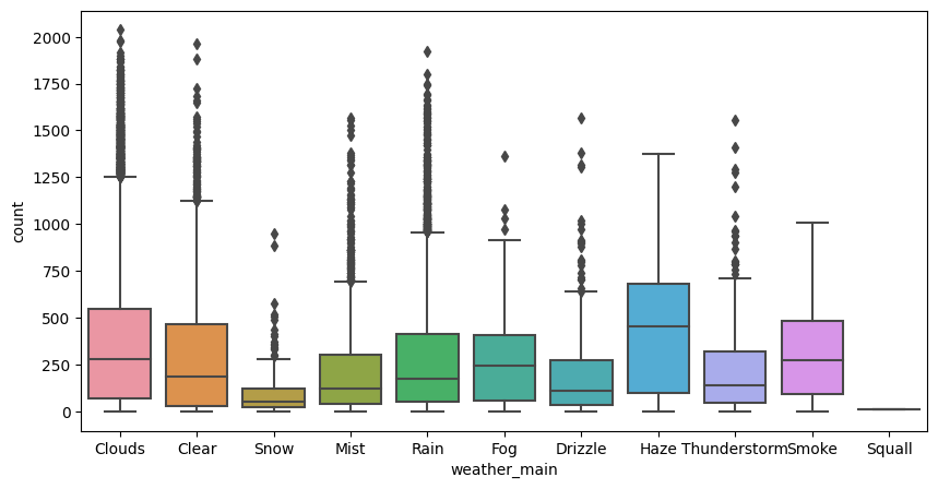 ✅ weather_main의 종류와 데이터 수를 boxplot으로 확인하기