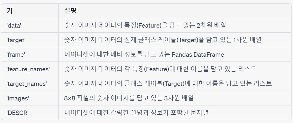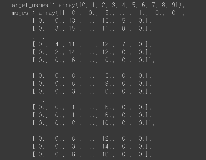 [데이터셋 정보] https://scikit-learn.org/stable/modules/generated/sklearn.datasets.load_digits.html
