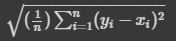 - 예측값과 실제값의 차이에 대한 제곱에 대하여 평균을 낸 후 루트를 씌운 값
