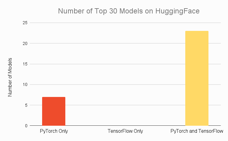 - 2022년에는 45,000개 이상의 PyTorch 전용 모델이 추가된 반면, TensorFlow 전용 모델은 약 4,000개에 불과