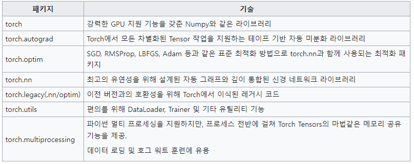 - Python 기반의 과학 계산 패키지인 토치(Torch)를 기반으로 개발