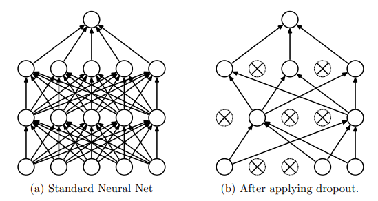 - 학습중일 때 랜덤하게 값을 발생하여 학습을 방해함으로 학습용 데이터의결과가 치우치는 것을 방지함