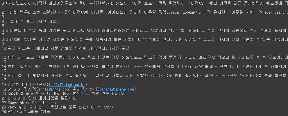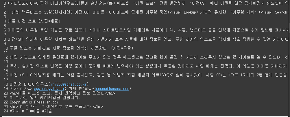 ✅ 기사에 아래와 같은 내용을 추가함(전처리를 위해)