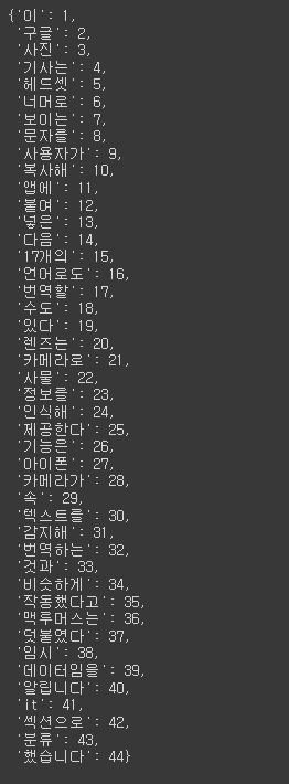 >>> 단어 사전의 크기는: 45개