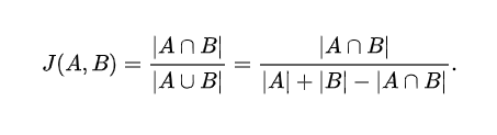 - 두 집합의 교집합인 공통된 단어의 개수를 두 집합의 합집합, 전체 단어의 개수로 나누는 것