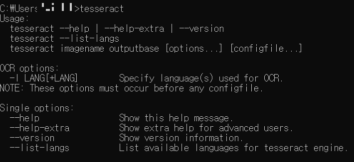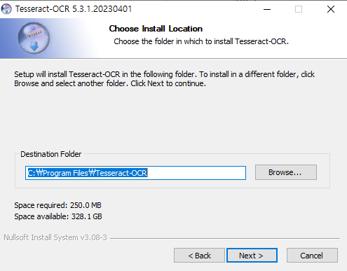 - 설치된 위치 기억: C:\Program Files\Tesseract-OCR