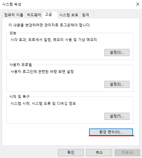 1-1. 윈도우 검색 창에서 "환경" 검색해서 들어가도 된다!