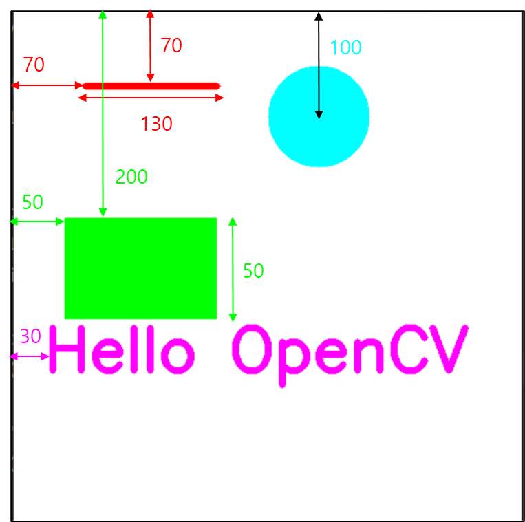 - cv2.circle(영상, 원의 중앙좌표, 반지름, 선색상, 선두께...)