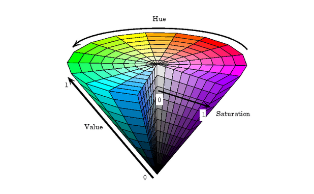 - 색상(빨강, 녹색, 파랑 등 H ),채도(선명도, S), 명도(빛의 밝기, V)의 좌표를 써서 특정한 색을 지정