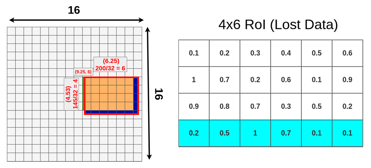- RoI pooling으로 인해 얻은 feature와 RoI 사이가 어긋나는 문제가 발생