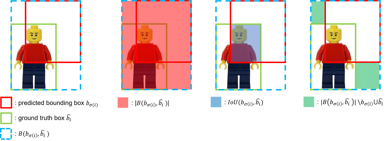 - 본 논문에서는 l1 loss와 generalized IoU(GIoU) loss를 함께 사용