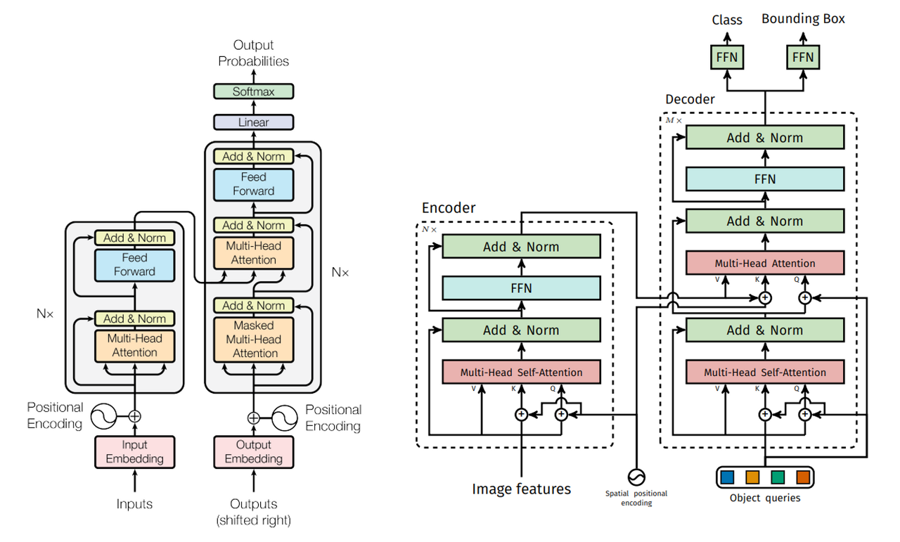 - DETR는 encoder에서 이미지 feature map을 입력 받는 반면, Transformer는 문장에 대한 embedding을 입력받음