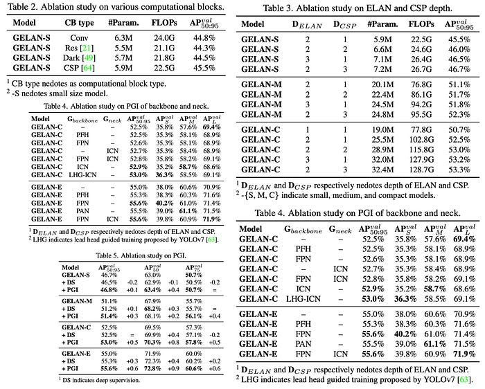 - GELAN의 성능은 블록 깊이에 크게 민감하지 않으므로 안정성을 저하시키지 않으면서 유연한 아키텍처 설계가 가능