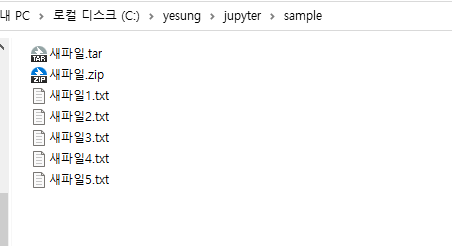 with tarfile.open('./sample/새파일.tar','w') as mytar: