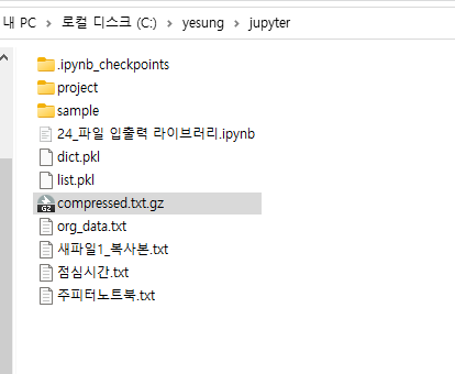 현재 경로에 compressed.txt.gz 압축파일이 만들어졌다.