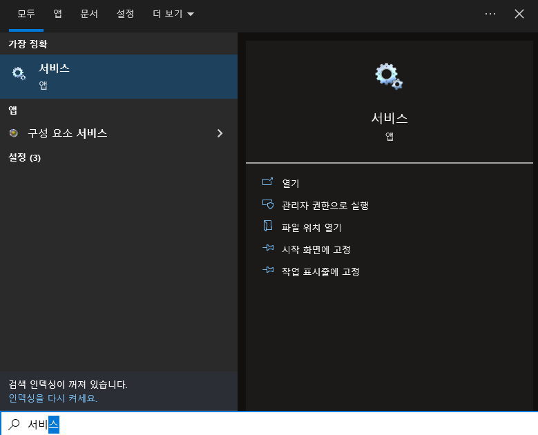 1) 검색창에서 '서비스' 검색