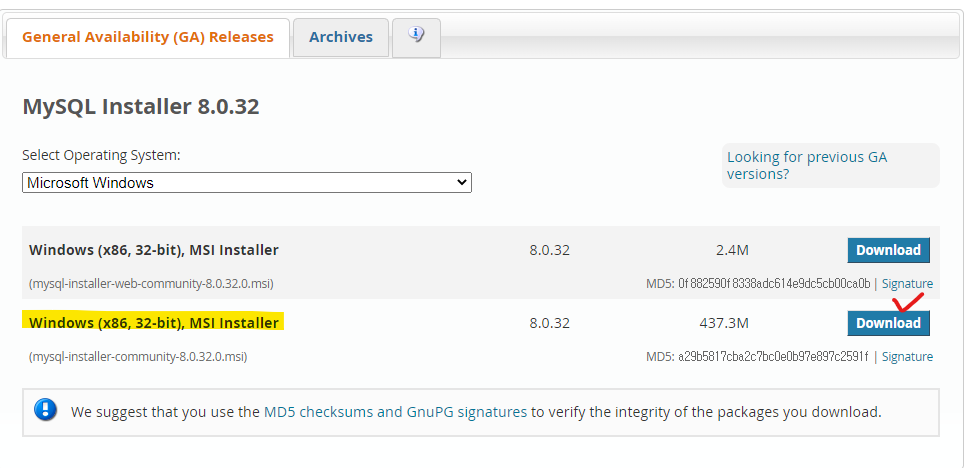3) Windows (x86, 64-bit), MySQL Installer MSI 클릭