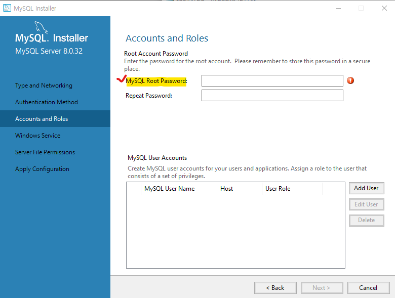 1) Root Account의 비밀번호를 설정하게되는데 반드시 기억하고 있어야함 !!