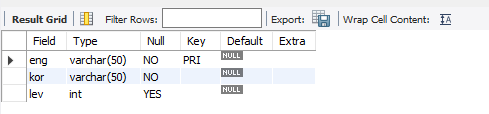 💡 eng 필드는 primary key 제약조건으로 중복값과 null값이 허용되지 않는다.