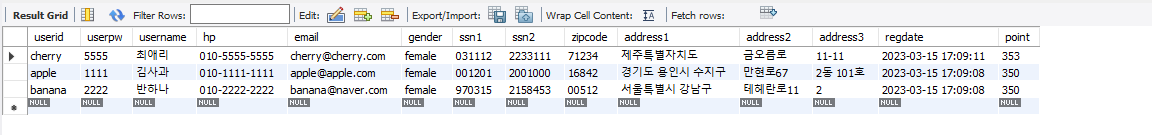 select userid, username, point from member order by userid asc;