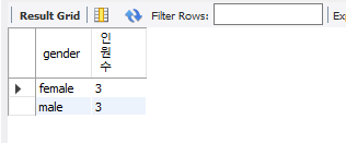 select gender, count(*) as 인원수 from member group by gender;