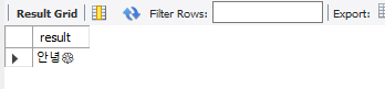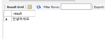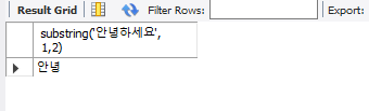 select substring('안녕하세요', 1,2)as result; # index가 아님!